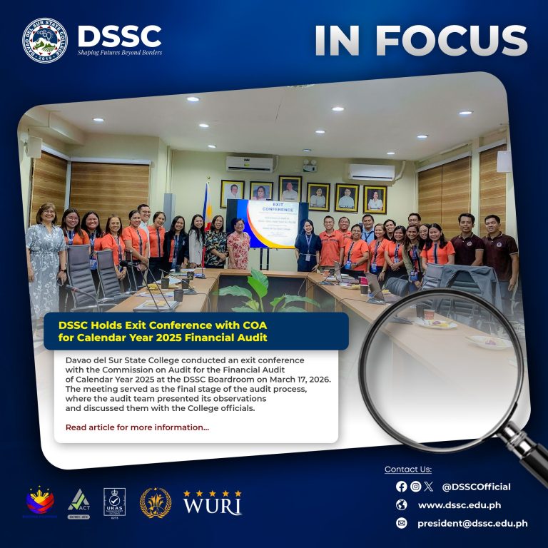 Davao del Sur State College conducted an exit conference with the Commission on Audit for the Financial Audit of Calendar Year 2025 at the DSSC Boardroom on March 17, 2026.