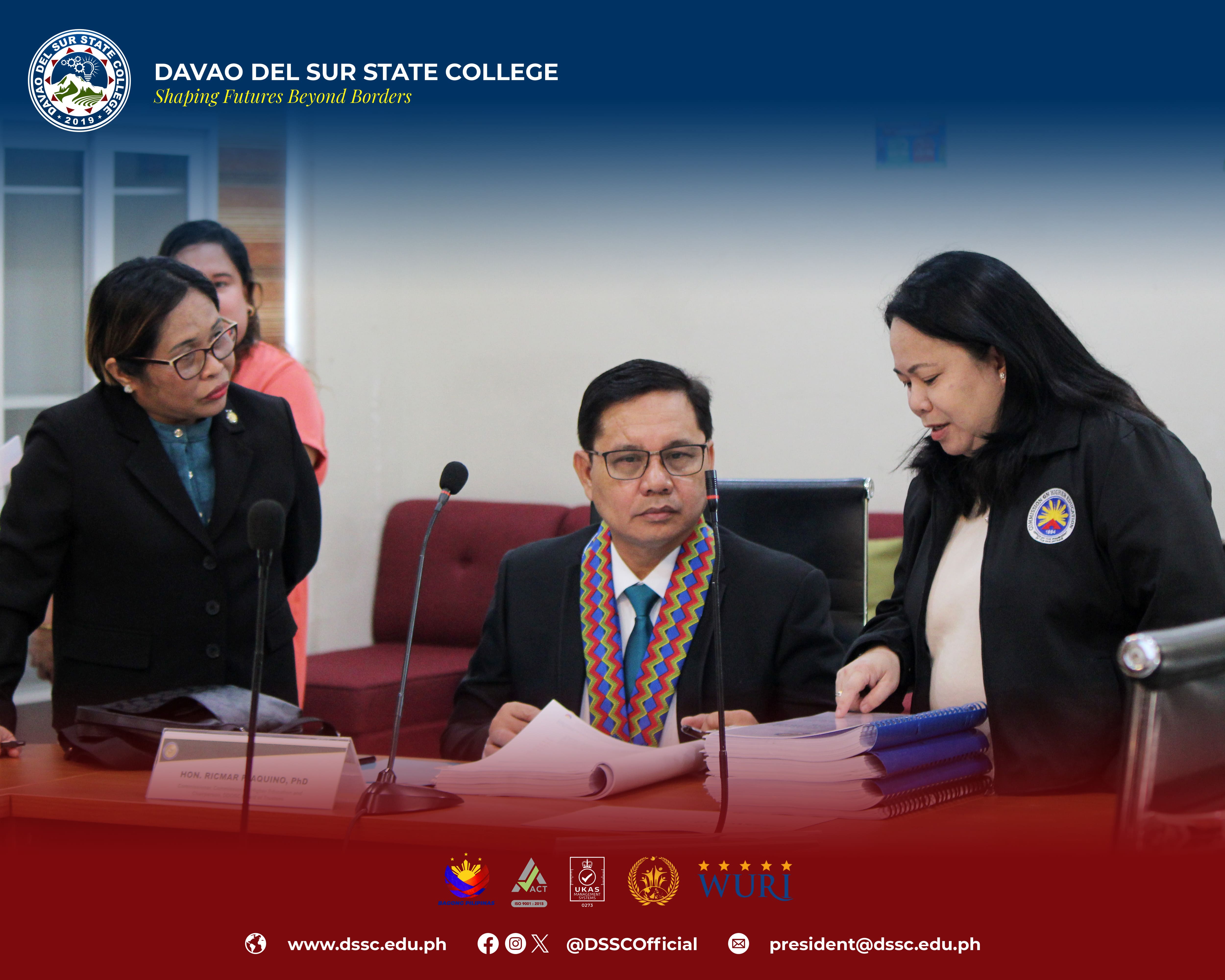 Davao del Sur State College (DSSC) hosted the 3rd Quarter Board of Trustees (BOT) Meeting for the Calendar Year 2025 for the four State Universities and Colleges (SUCs) in Mindanao under the leadership of Commissioner and Board of Trustees Chairperson-Designate for the Commission on Higher Education (CHED) Dr. Ricmar P. Aquino. This was conducted in the DSSC Board Room on September 30 to October 1, 2025.