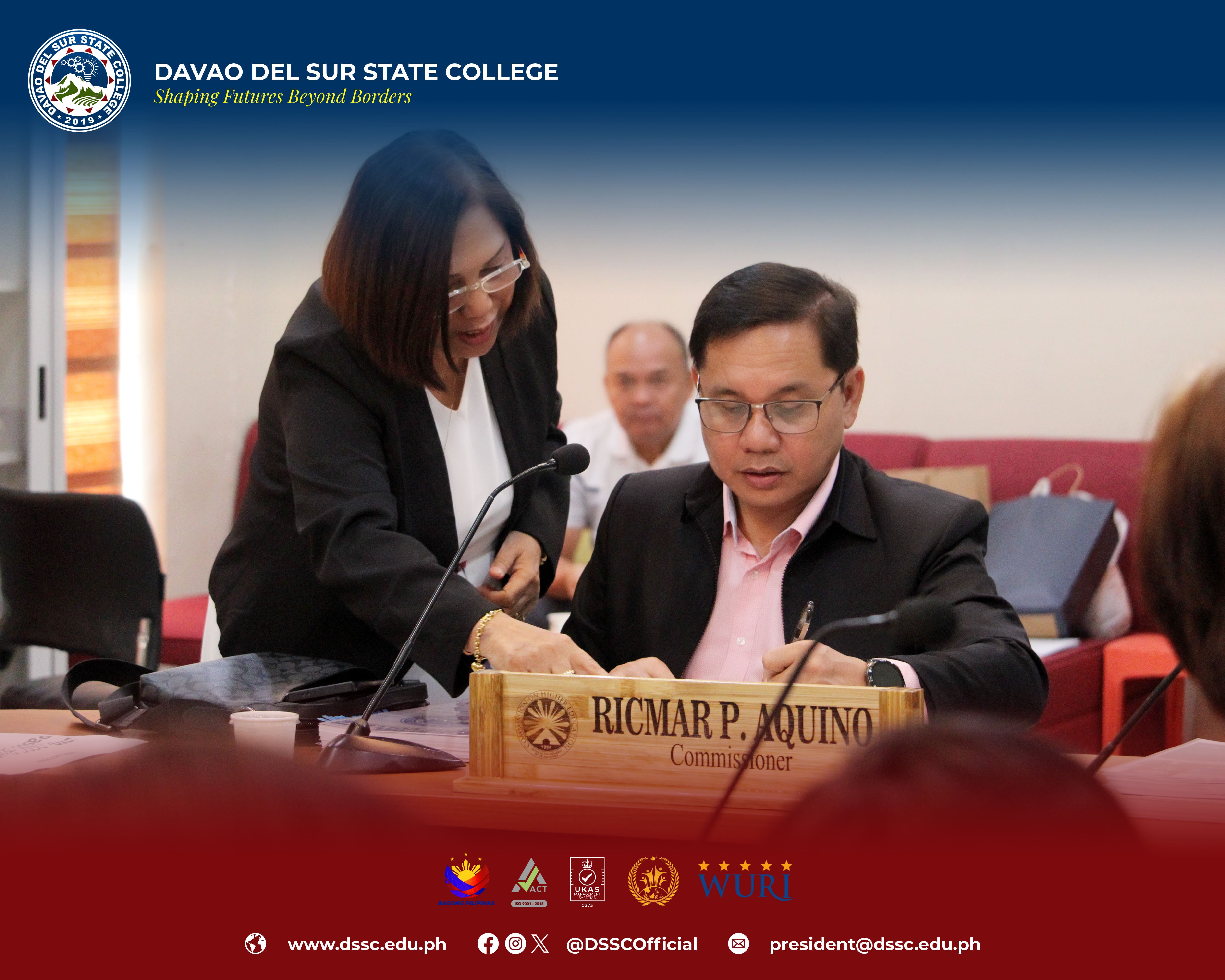 Davao del Sur State College (DSSC) conducted its 23rd Regular Board of Trustees (BOT) Meeting on October 1, 2025. It was held at the DSSC Board Room, with Davao del Sur State College President Dr. Augie E. Fuentes and Board members in attendance. The session was chaired by Dr. Ricmar P. Aquino, CHED Commissioner and BOT Chairperson-Designate.