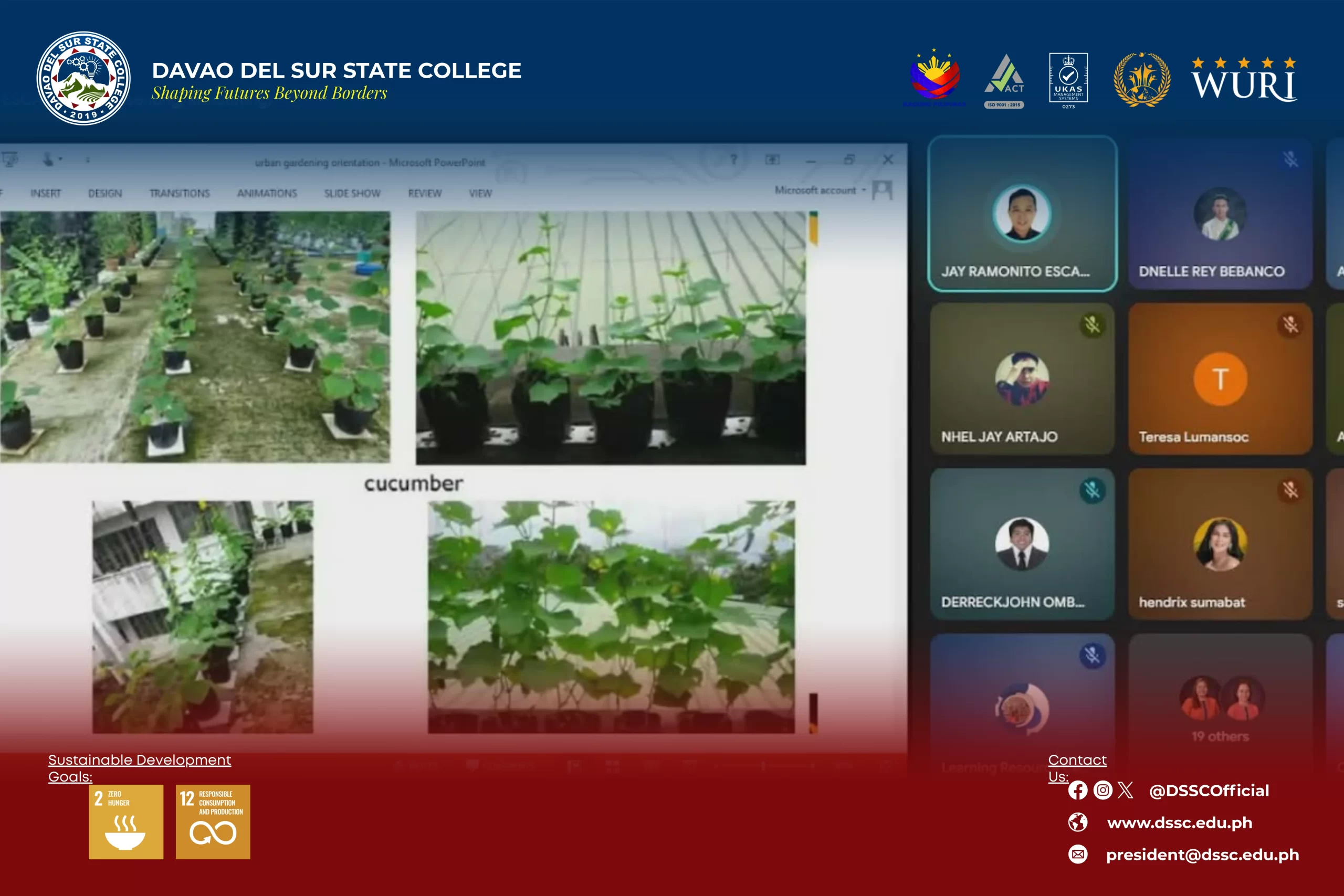 Davao del Sur State College (DSSC) through the College of Agriculture and Related Sciences (CARS) conducted an online orientation on the Food Always in the Home (FAITH) program, aimed at promoting sustainable food production practices among employees, on April 10, 2026 via Google Meet.