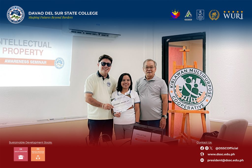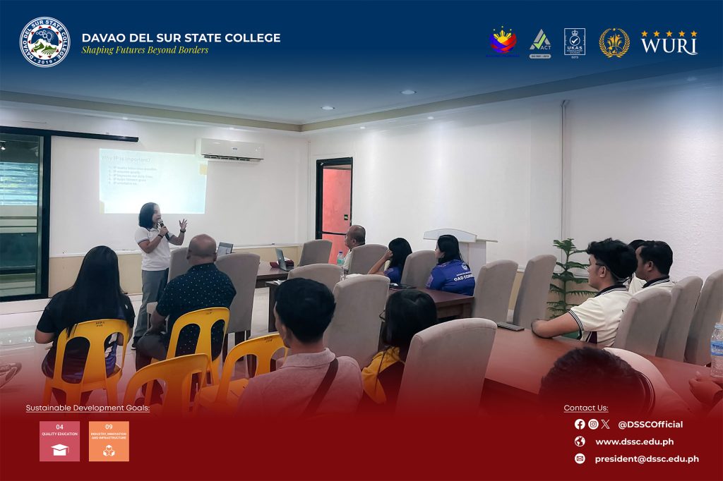 Davao del Sur State College conducted an orientation and workshop on intellectual property on April 16, 2026, at the Kiblawan Multi-Purpose Cooperative in Kiblawan, Davao del Sur.