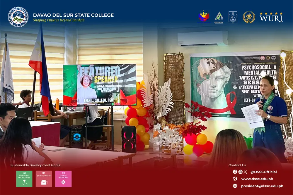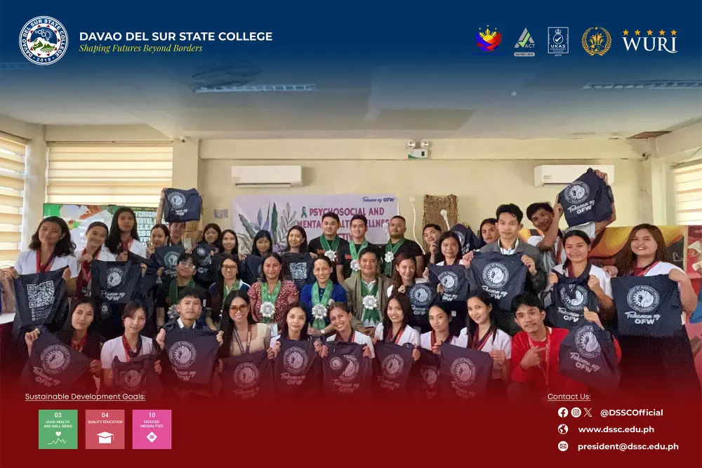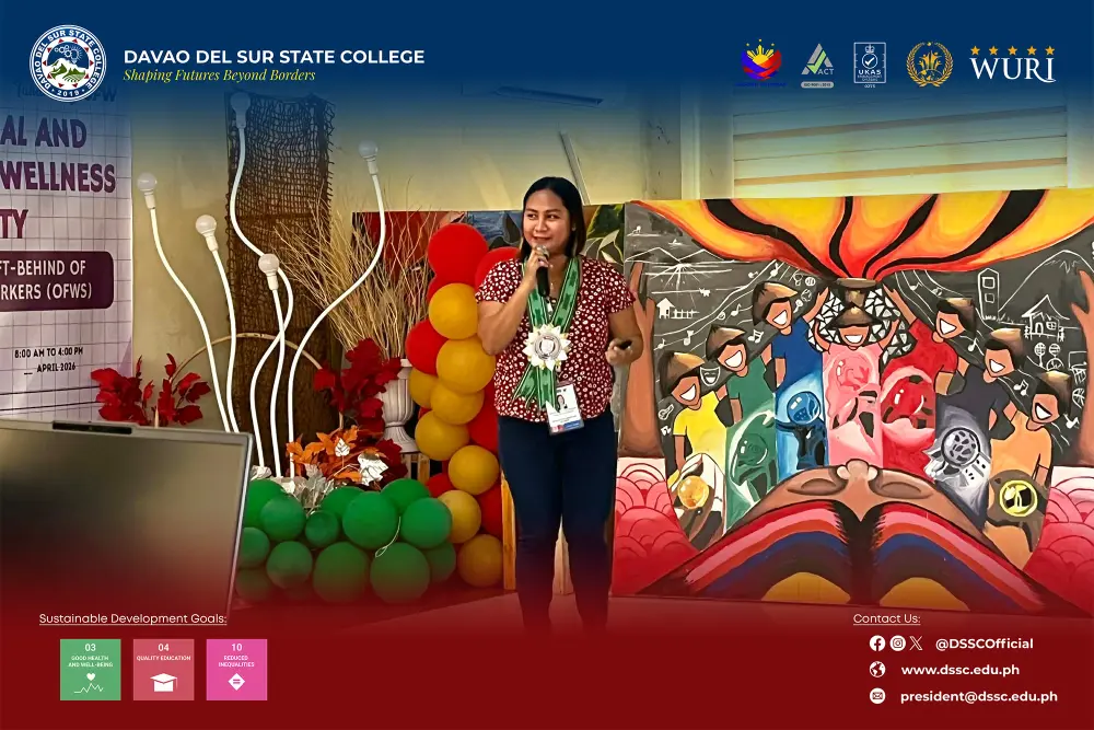 Davao del Sur State College (DSSC), through its Culture, Arts, Humanities, Research and Development Center (CAHDrE), in partnership with the Department of Migrant Workers (DMW), Department of Social Welfare and Development (DSWD), and LoveYourself PH held a Psychosocial and Mental Health Wellness Forum for children of Overseas Filipino Workers (OFWs) at DSSC Main Campus on April 16, 2026.