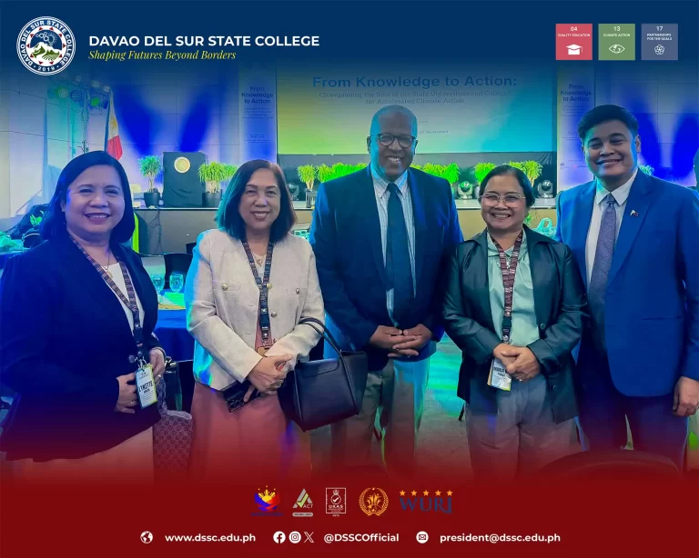 The initiatives of the Davao del Sur State College are aligned with the United Nations Sustainable Development Goals, particularly those on quality education, decent work, reduced inequalities, and sustainable communities. By expanding access to education, supporting research that addresses local challenges, and strengthening community engagement, the College contributes to long-term social and economic development. These efforts reflect our belief that higher education plays a vital role in building informed citizens and resilient communities, both locally and beyond.