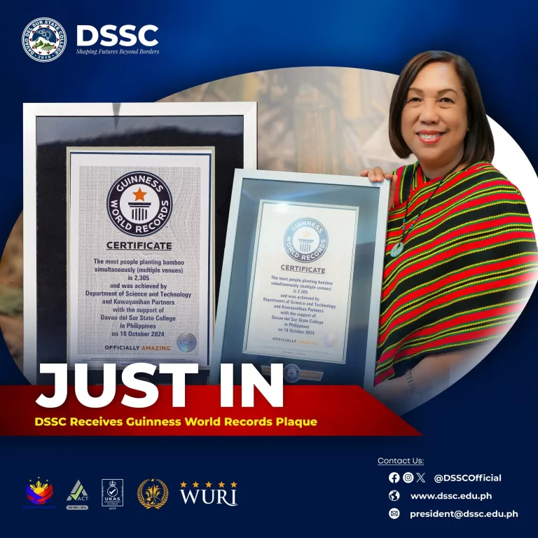 Davao del Sur State College has officially received the Guinness World Records plaque for “KAWAYANIHAN: