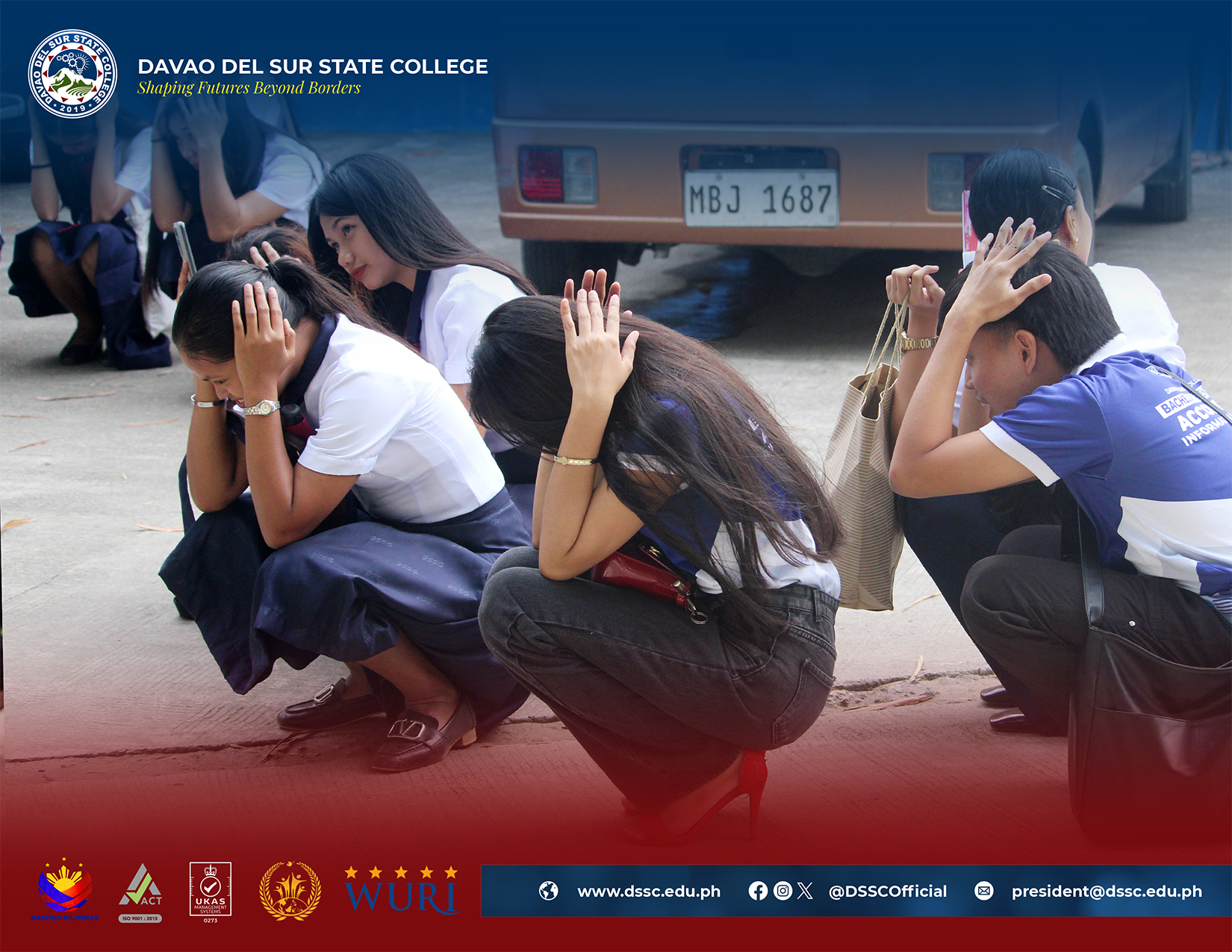 Davao del Sur State College conducted the 2025 Third Quarter Nationwide Simultaneous Earthquake Drill on September 11, 2025, at 3:00 PM. The activity was supervised and evaluated by the City Disaster Risk Reduction and Management Office (CDRRMO).