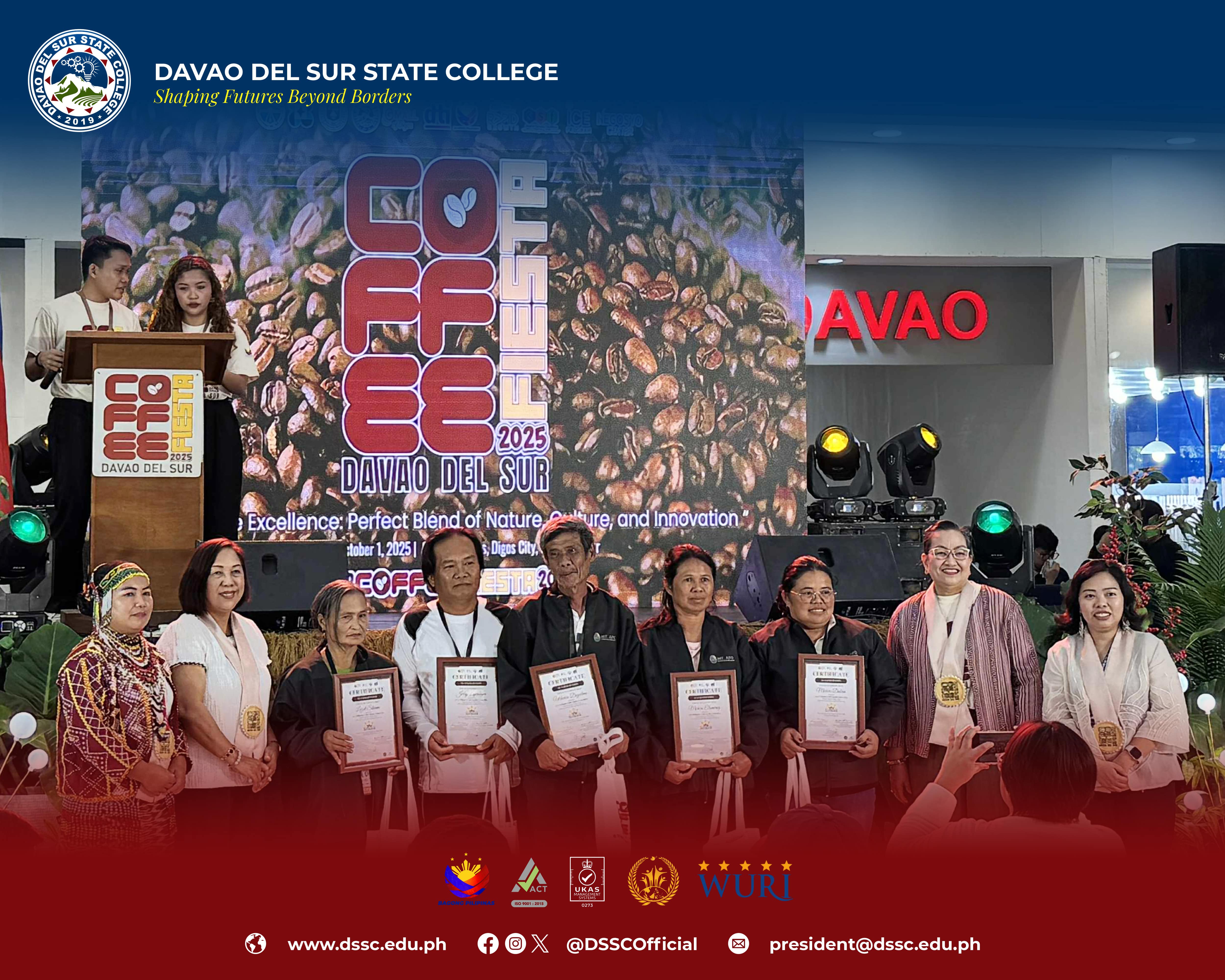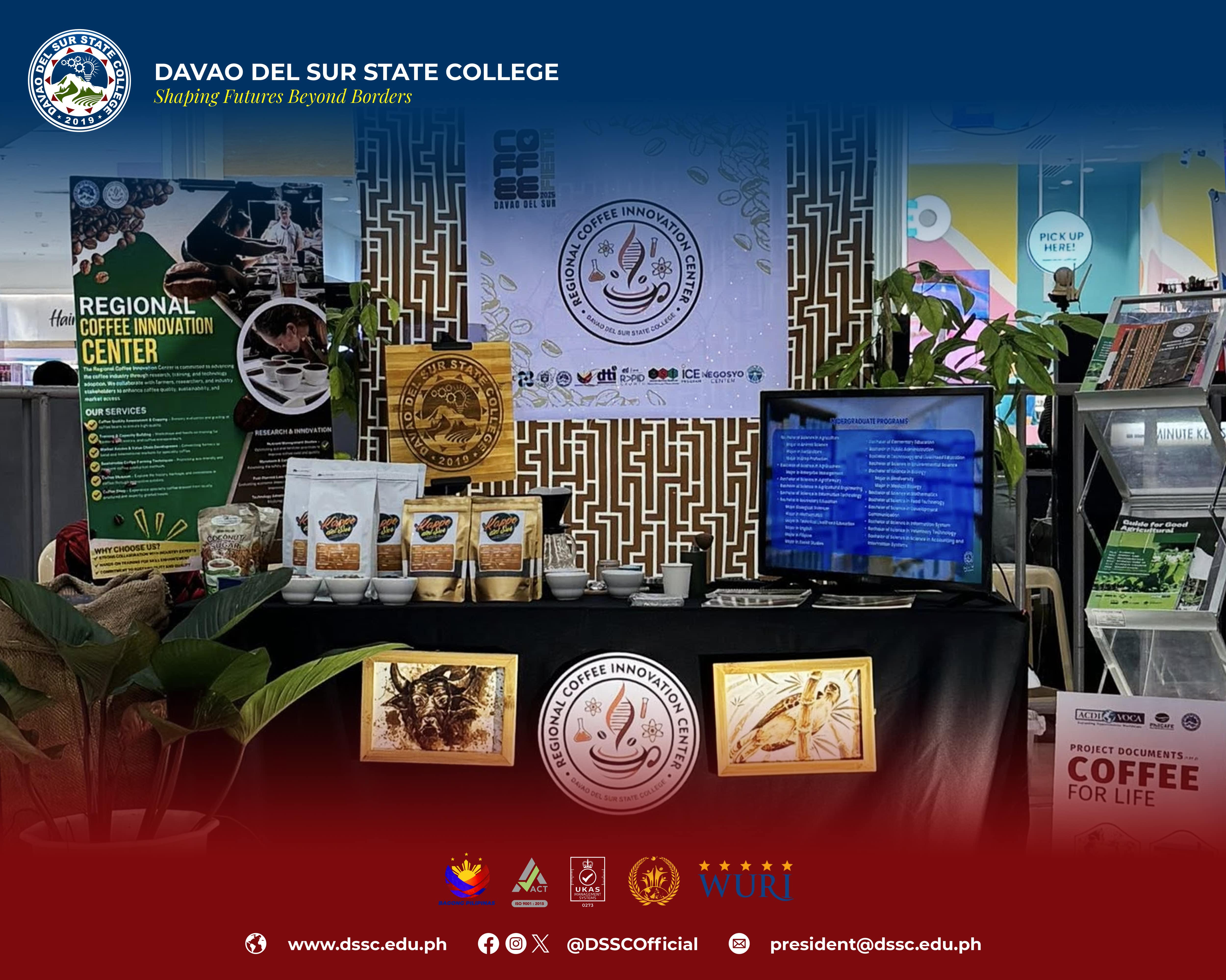 Davao del Sur State College (DSSC) participated through its Regional Coffee Innovation Center (RCIC) to the Davao del Sur Coffee Fiesta 2025, a 3-day celebration of the province’s rich coffee heritage, culture, and innovation at The Atrium, Gmall of Digos, Digos City on September 29 to October 1, 2025, with the theme, “Coffee Excellence: Perfect Blend of Nature, Culture, and Innovation.”
