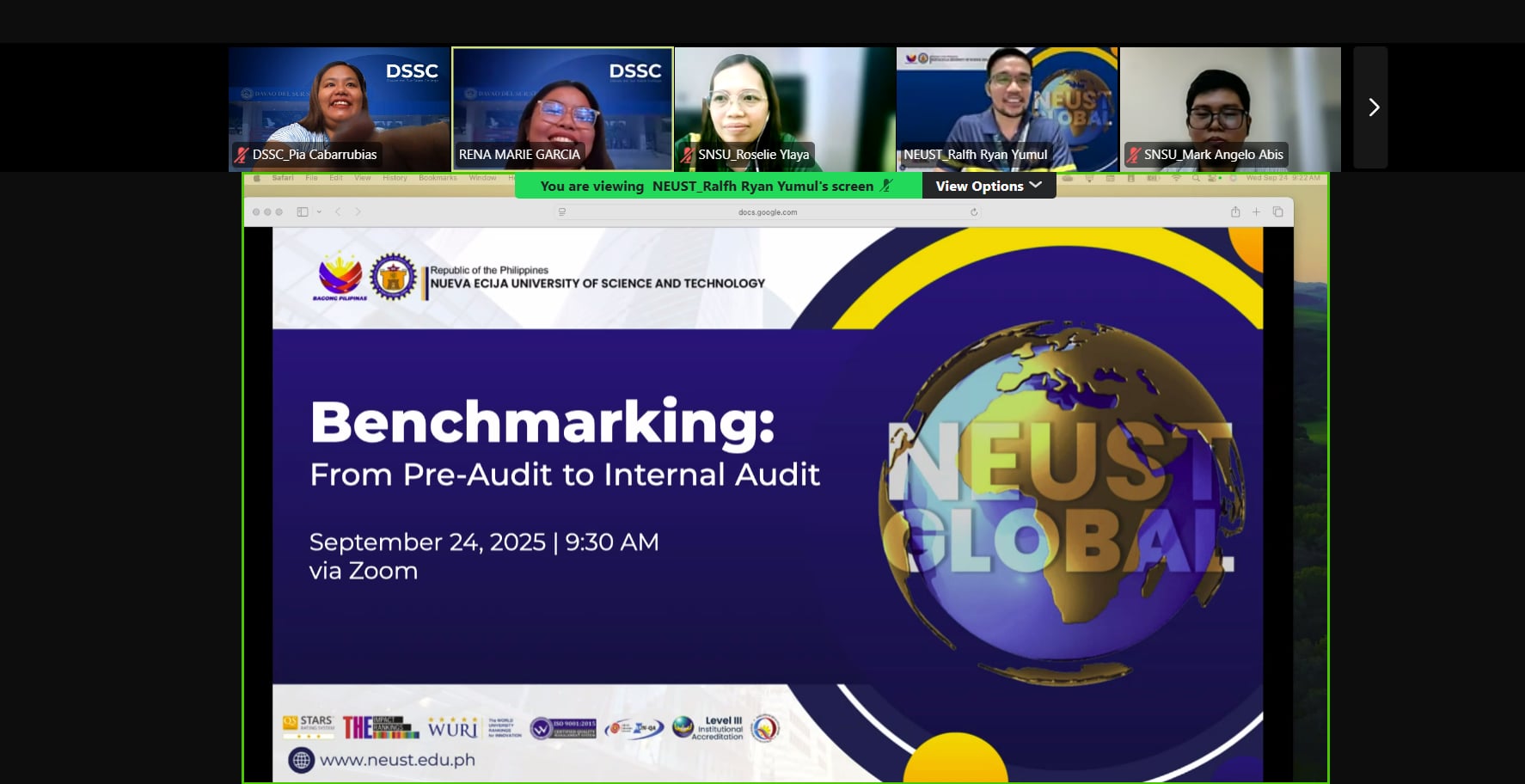 Davao del Sur State College - Internal Audit Services Office (DSSC-IASO) conducted its Virtual Benchmarking Initiative on September 24 and 26, 2025. This event became an opportunity for DSSC to collaborate and engage professionally with some State Universities and Colleges (SUCs) with established Internal Audit Services (IAS) Offices.